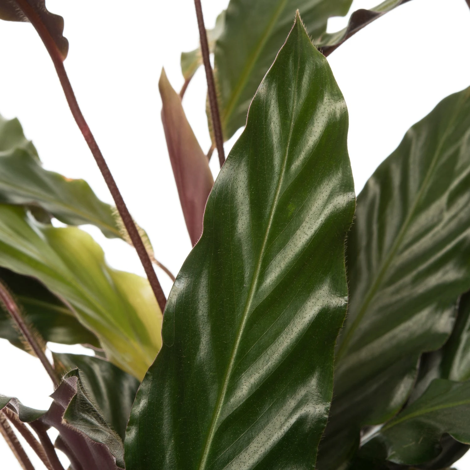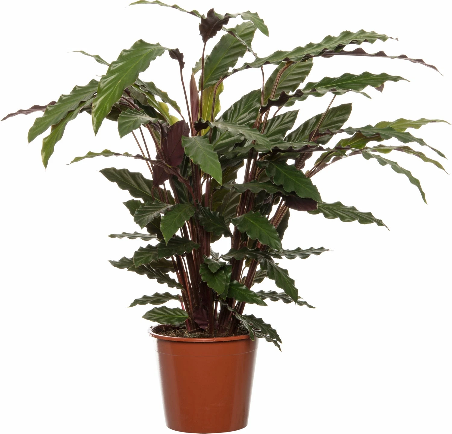 Bij ons is de Calathea in diverse vormen verkrijgbaar, hierbij is ook de nederlandse naam wisselend. Naast dat ze gewoon erg mooi staan in je interieur hebben Calathea’s ook nog eens een luchtzuiverende werking. De Calathea rufibarba heeft smalle langewerpige bladeren.