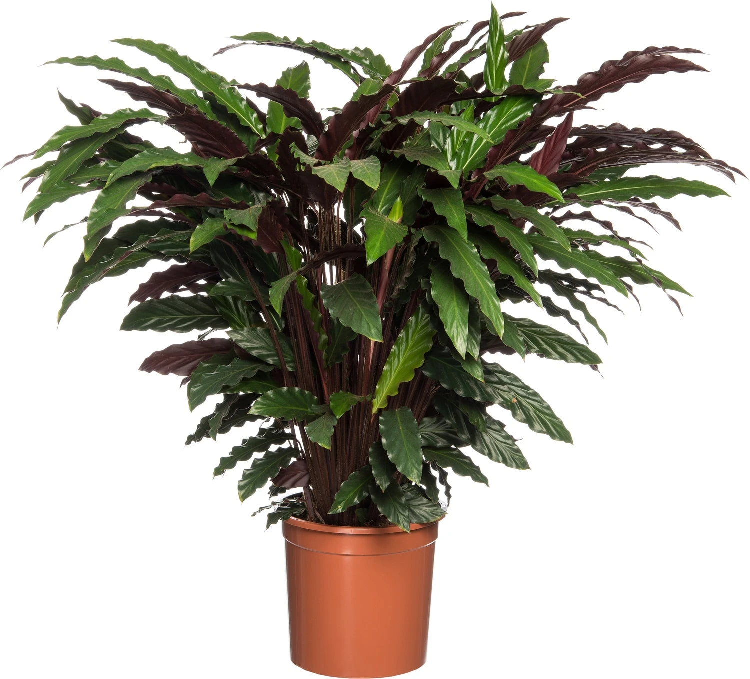 Probeer tocht en kou te vermijden, deze plant houdt van temperaturen tussen de 18 en 25 graden. Calathea’s hebben een hoge luchtvochtigheid nodig, dus benevel de bladeren liefst elke week met ontkalkt water. Laat de grond tussen de gietbeurten door niet teveel uitdrogen, maar pas ook op dat er geen water bij de wortels blijft staan, want dat kan wortelrot tot gevolg hebben. Wanneer de pot vol zit met wortels en er bijna geen grond meer te zien is, heeft deze Calathea een grotere pot nodig. Neem hiervoor een pot die ongeveer 20 % groter is dan de bestaande pot en gebruik verse potgrond als aanvulling.