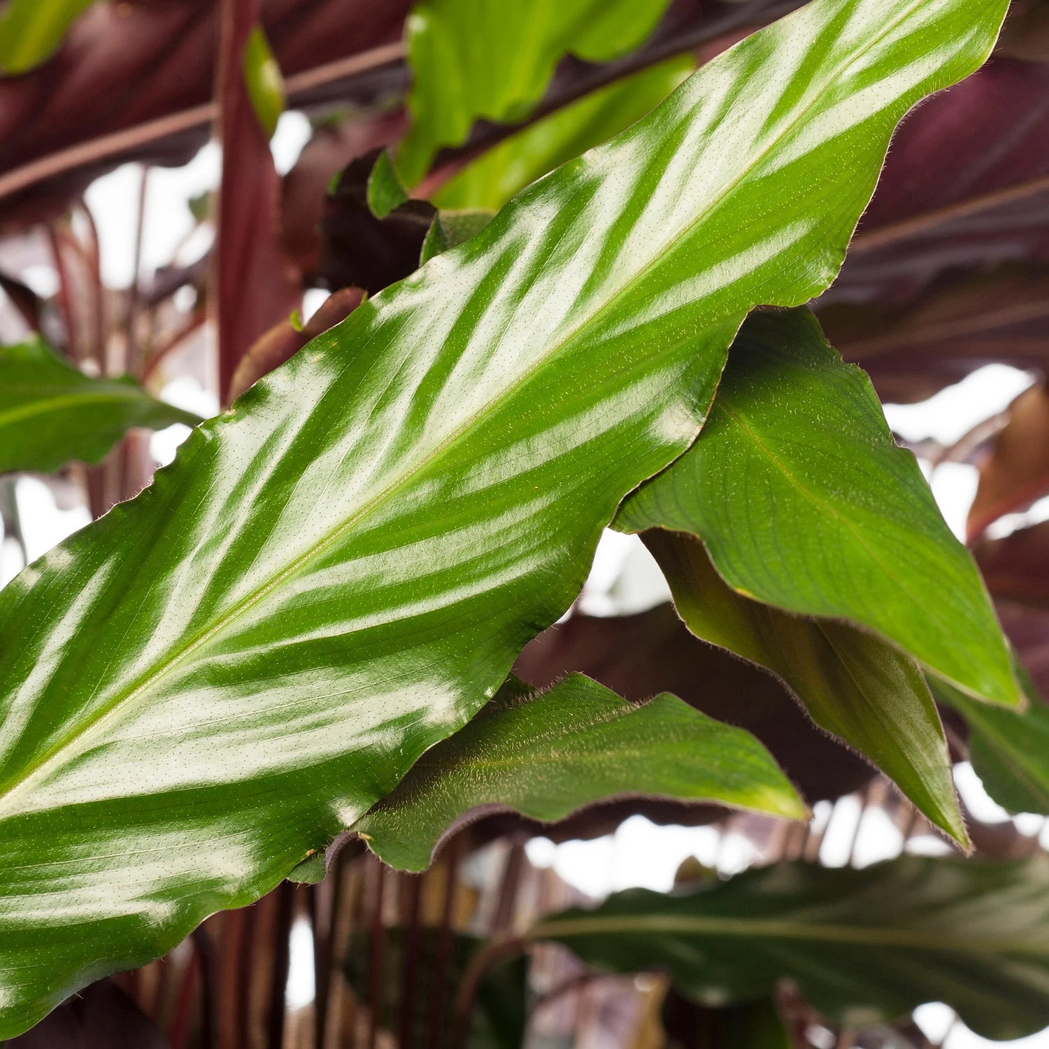 Een Calathea is niet alleen maar een mooie plant om naar te kijken, hij heeft ook nog eens een luchtzuiverende werking, waardoor het een geschikte plant is voor zowel de woonkamer als het kantoor. Zet de plant op een lichte plaats, maar niet in de directe zon. Een plek wat verder in de kamer vind hij ook prima. De meeste Calathea soorten worden gekocht om hun donkere bladeren met lijnen, stippen vlekken in een lichtere kleur. De Calathea rufibarba heeft smal groen blad, deze onderzijde is iets lichter groen en zacht behaard.