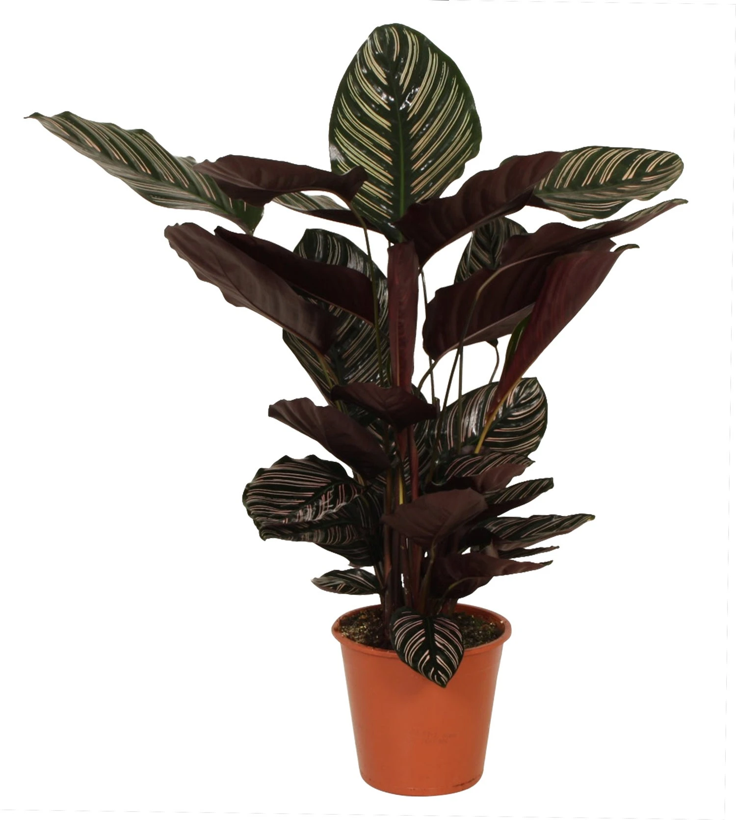 Bij ons is de Calathea in diverse vormen verkrijgbaar, hierbij is ook de nederlandse naam wisselend. Naast dat ze gewoon erg mooi staan in je interieur hebben Calathea’s ook nog eens een luchtzuiverende werking. De Calathea ornata heeft donker paars-groene bladeren met opvallende lichte potloodstrepen in het lichtroze- wit. Het is een niet allerdaags soort.