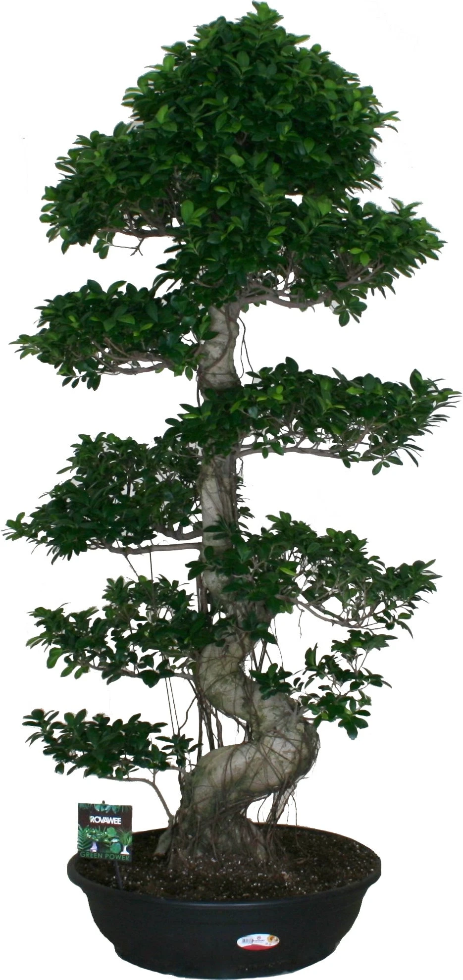 De Ficus microcarpa ‘Ginseng’ is een Oosterse schoonheid. Hij groeit in het zuiden van China en Maleisië. Het bijzondere van deze plant zijn de luchtwortels die hij vormt, deze hangen naar beneden en als ze de grond raken verhouten ze. Dit geeft de Ficus microcarpa zijn bijzondere uiterlijk. Elke plant heeft een unieke eigen vorm. Met een heleboel geduld is deze plant ontwikkeld als Bonsai.