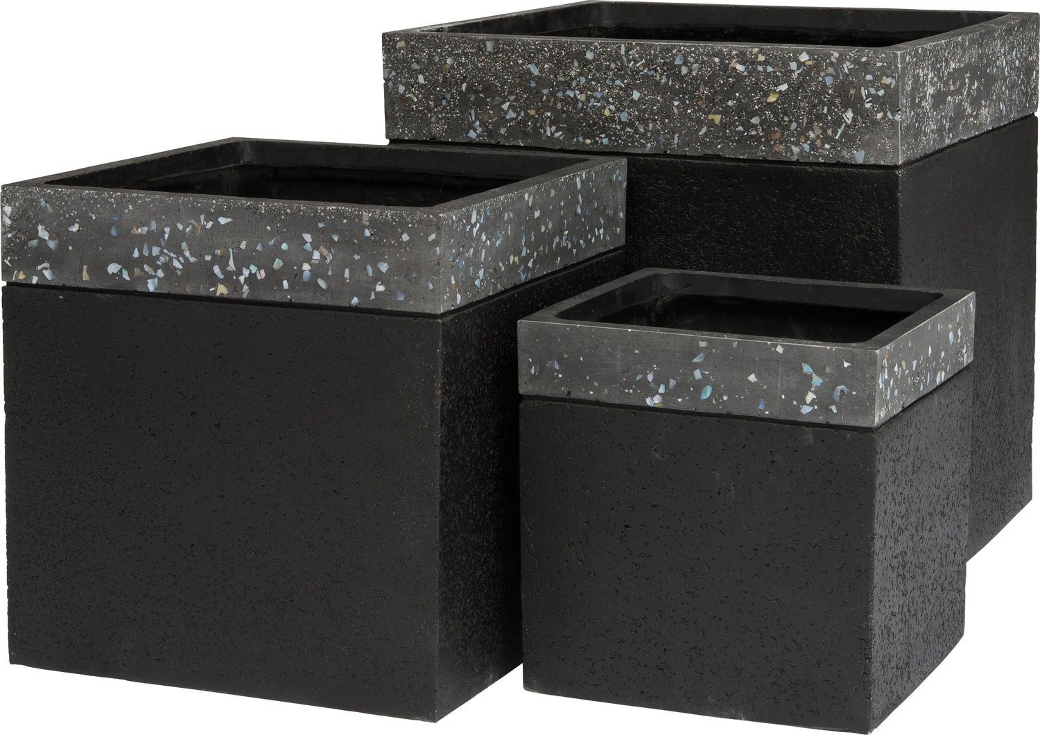 Voor een moderne tuin mag de plantenbak Hante van Intratuin niet ontbreken. De bak is zwart en heeft een eenvoudig maar strak design van één horizontale grijze streep. De plantenbak is licht gewicht en daardoor gemakkelijk te verplaatsen. De serie Hante is te verkrijgen in diverse kleuren en maten. De afmetingen van deze plantenbak zijn 40 x 40 x 40 cm. Aan de onderkant van de plantenbak zit een gat voor een goede afwatering.
