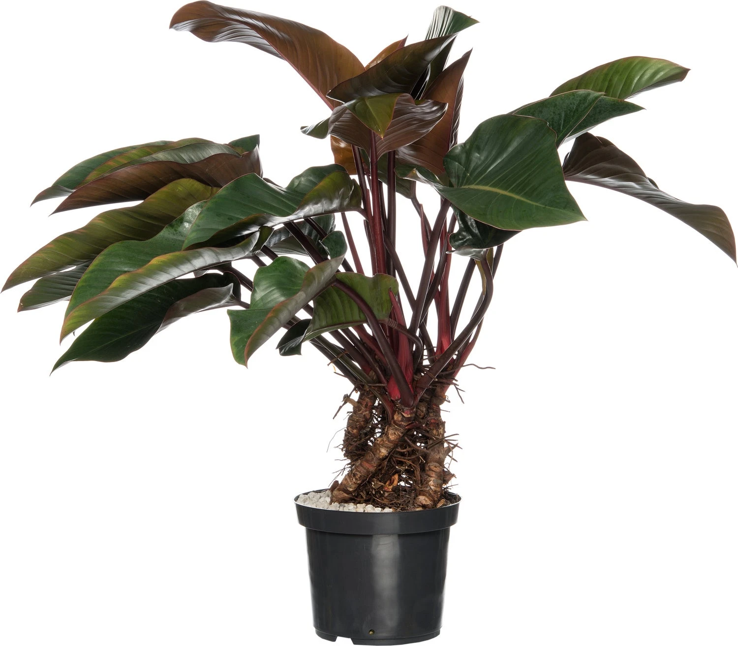 De familie van de Philodendron breidt maar uit en uit. Er zijn tegenwoordig vele soorten en varianten op de markt. De plant is familie van de aronskelkachtigen. De plant komt niet snel in bloei maar dan zie je pas de vergelijking met andere soorten binnen deze grote familie. Het sap van deze plant is giftig voor mens en dieren. Zorg ervoor dat je handschoenen aan doet als je met deze plant aan de slag gaat en zorg ervoor dat hij buiten bereik staat van huisdieren. Deze Philodendron ‘Green Beauty’ heeft rood groen langwerpig blad.