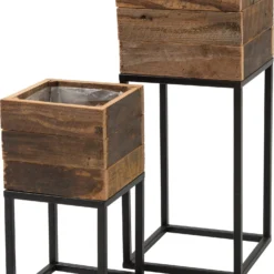 Intratuin Plantenbak Miles Op Voet Zwart / Naturel 18 X 18 X 34 Cm