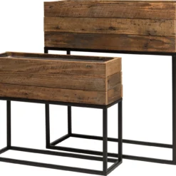 Intratuin Plantenbak Op Voet Zwart / Naturel 55 X 21 X 60,5 Cm