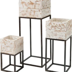 Intratuin Plantenbak Kyra Op Voet Wit / Naturel 22 X 22 X 54 Cm
